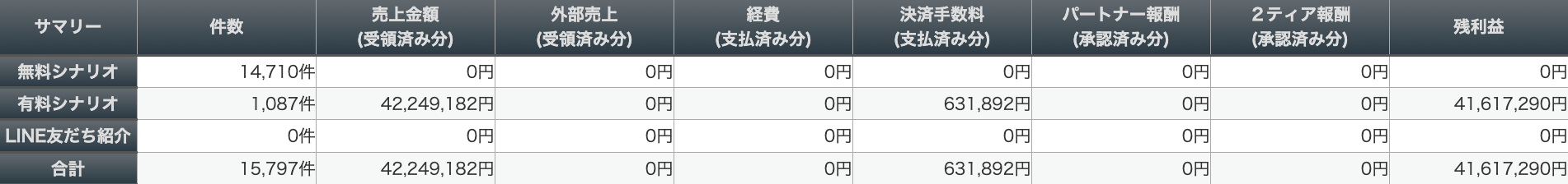 その他の決済システムも含めると累計売上は6000万〜7000万。